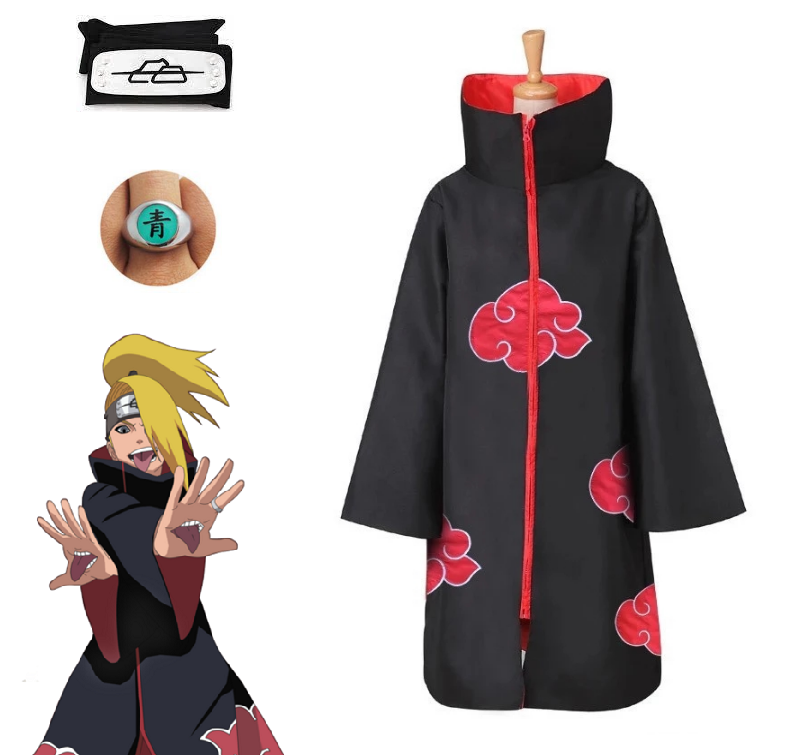 Набір Наруто Плащ клан Акацукі + пов'язка + кільце Дейдари