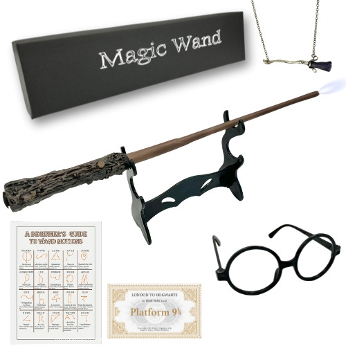 - Деталізована чарівна паличка Гаррі Поттера на підставці зі світловими ефектами – відчуйте магію у своїх руках!